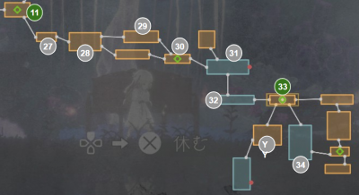 ・入手場所:魔女たちの森(レストポイント「橋の前」の右下のエリア)の、レストポイント「魔女の部屋」の1つ左。(マップの「32」