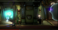 ルイージが部屋で昼寝をしていると、ピーチの悲鳴が。起きて探索すると、さきほどまでの「きらびやか」な雰囲気とはうってかわって「おどろおどろしい」雰囲気に。