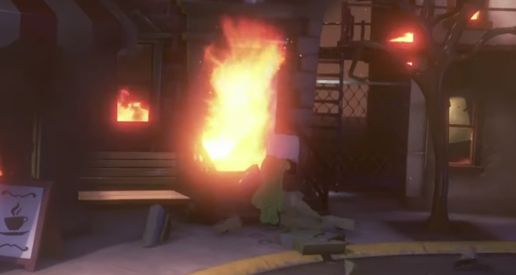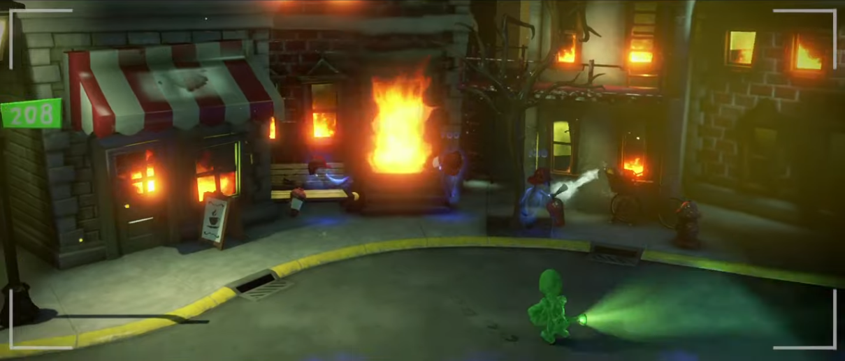 グーイージを出してルイージがカメラを覗くと火事の街。