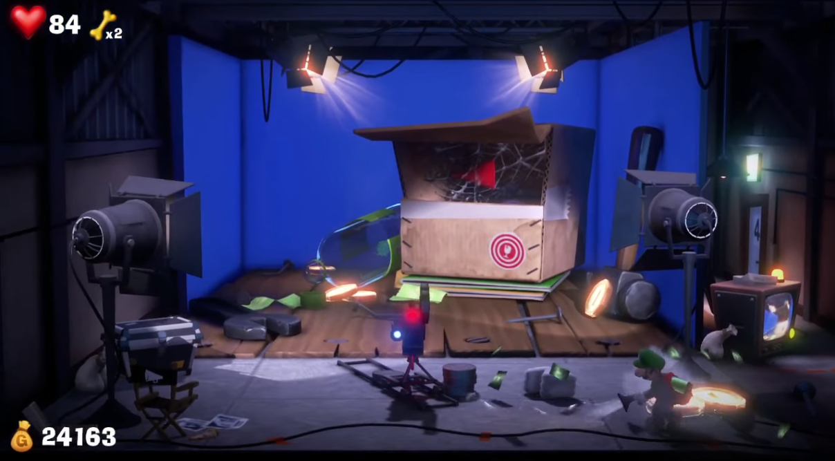 グーイージを出した状態で、ルイージが赤いランプのついてるカメラを覗くと、映像の中のグーイージを動かせる。