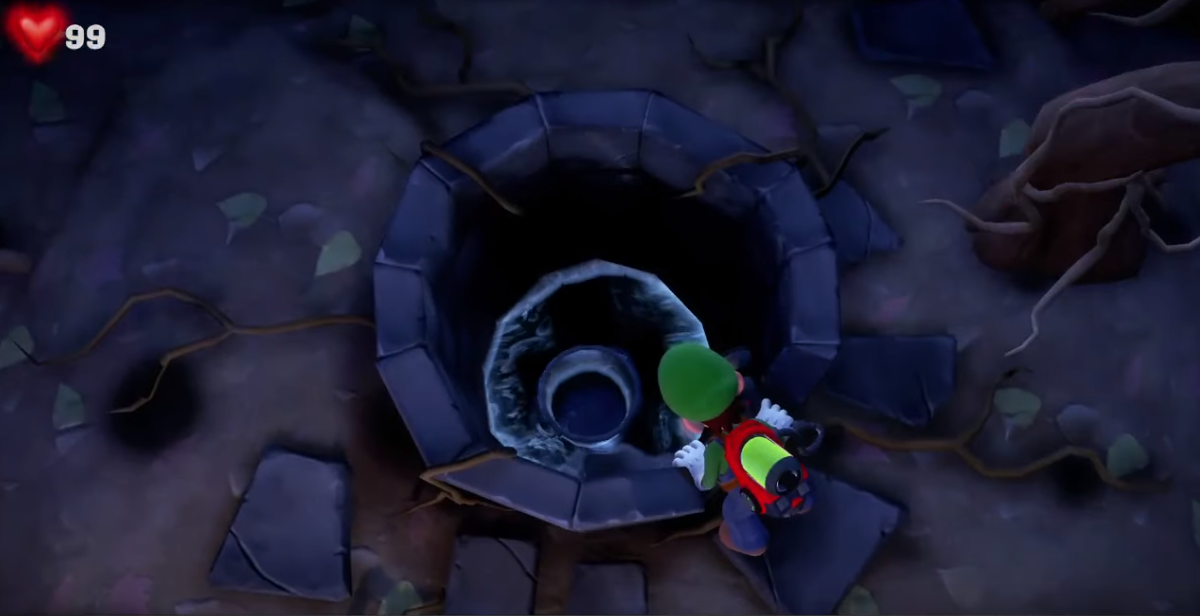 バケツを井戸に落とし、グーイージを呼びルイージはカメラを覗く。