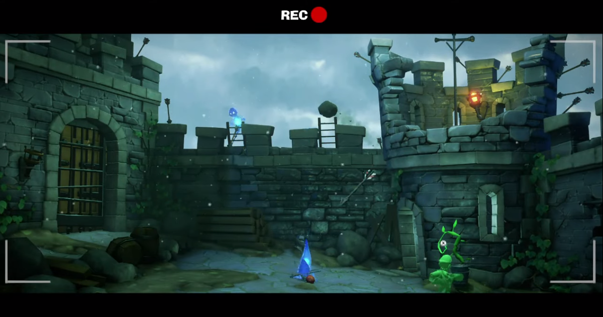 グーイージを砦下のツタまで移動させ、Xボタンを押すとツタが成長して上に登れるようになる。