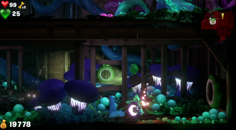 ラジオのストロボスイッチはダークライト連打するとランニングマシンにお化けが3体出現する、その内一体はあ特殊なお化けで倒すと宝石が入手できる。
